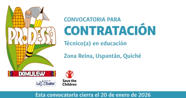 El Proyecto de Desarrollo Santiago -PRODESSA-, en el marco del proyecto: Sistema de Alimentación Bienestar y Educación Sostenible (SABES), con el apoyo financiero de Save the Children, convoca a profesor en Educación Bilingüe Intercultural con estudios en Pedagogía o carreras afines para orientar a nivel municipal a docentes, voluntarios y...