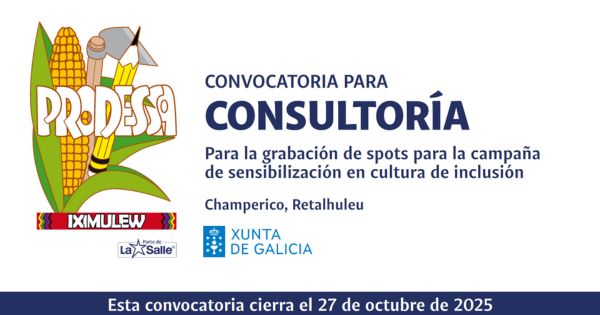 El Proyecto de Desarrollo Santiago -PRODESSA-, en el marco del proyecto: Qoklen toj xnaq´tzb´il (valor a la educación) por una educación inclusiva, equitativa, de calidad, libre de discriminación, en un entorno seguro y en unas infraestructuras apropiadas, en el Municipio de Champerico, Retalhuleu, con el apoyo financiero de La Xunta...