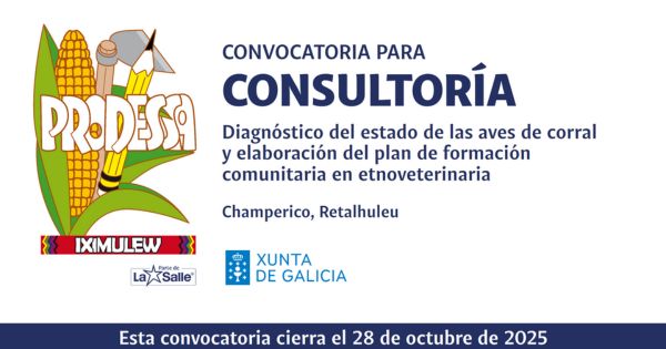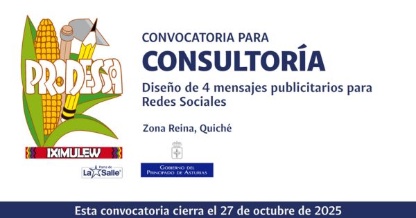 El Proyecto de Desarrollo Santiago -PRODESSA-, en el marco del proyecto: Empoderamiento económico y político de mujeres campesinas maya-q’eqchi’s con enfoque de soberanía alimentaria y prevención de violencia de género, en la Zona Reina, Guatemala, Fase 2, con el apoyo financiero del Gobierno del Principado de Asturias, contratará a una...