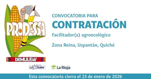 El Proyecto de Desarrollo Santiago -PRODESSA-, en el marco del proyecto: Mujeres campesinas maya q’eqchi’s promueven la seguridad alimentaria a través de la producción agroecológica en la Zona Reina, Guatemala, con el apoyo financiero de La Rioja, convoca a estudiante universitario de ciencias políticas y sociales, trabajo social, humanidades, educación...