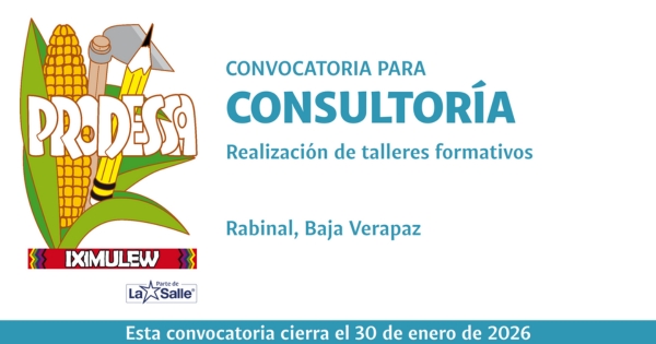 El Proyecto de Desarrollo Santiago -PRODESSA-, en el marco del proyecto: Escolarización para un futuro mejor de la niñez y juventud indígena en Guatemala, consultor o equipo consultor para facilitar talleres educativos presenciales que fortalezcan conocimientos, habilidades y actitudes críticas de estudiantes, docentes y actores comunitarios, contribuyendo al ejercicio de...